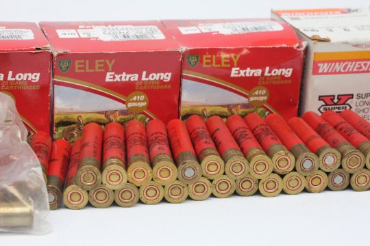 .410 GAUGE CARTRIDGES 170+ TO INCLUDE ELEY AND WINCHESTER LONG RANGE PLUS CARTRIDGE BELT.