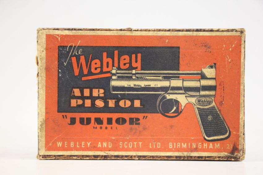 BOXED WEBLEY JUNIOR VINTAGE .177 AIR PISTOL, #1231 - (ALL GUNS TO BE INSPECTED AND SERVICED BY QUALIFIED GUNSMITH BEFORE USE)