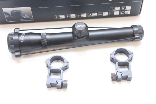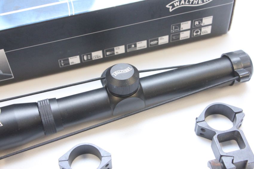 WALTHER PZ2X20 RIFLE SCOPE WITH MOUNTS AND INSTRUCTIONS BOXED.