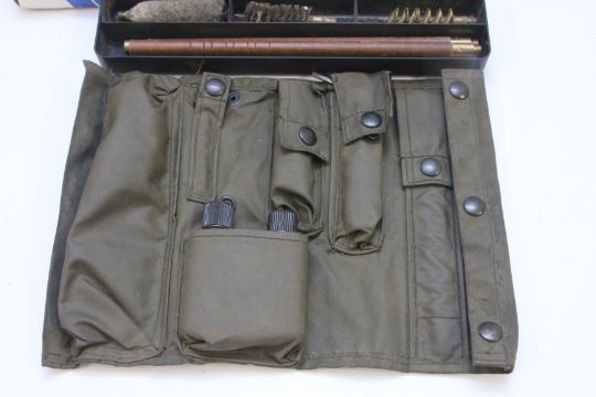 A GROUP OF CLEANING AND GUN MAINTENANCE EQUIPMENT TO INCLUDE RODS AND RELOADER TOOL.