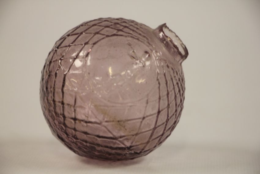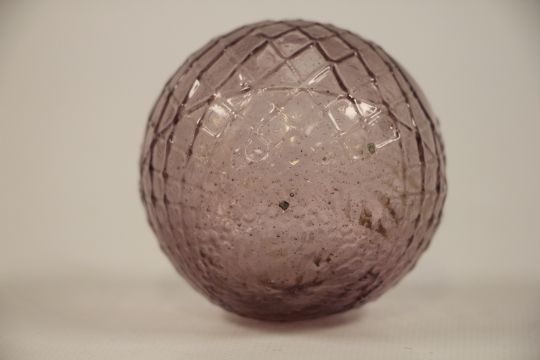 A LATE VICTORIAN GLASS TARGET BALL WITH MOULDED STANDING SHOOTER.