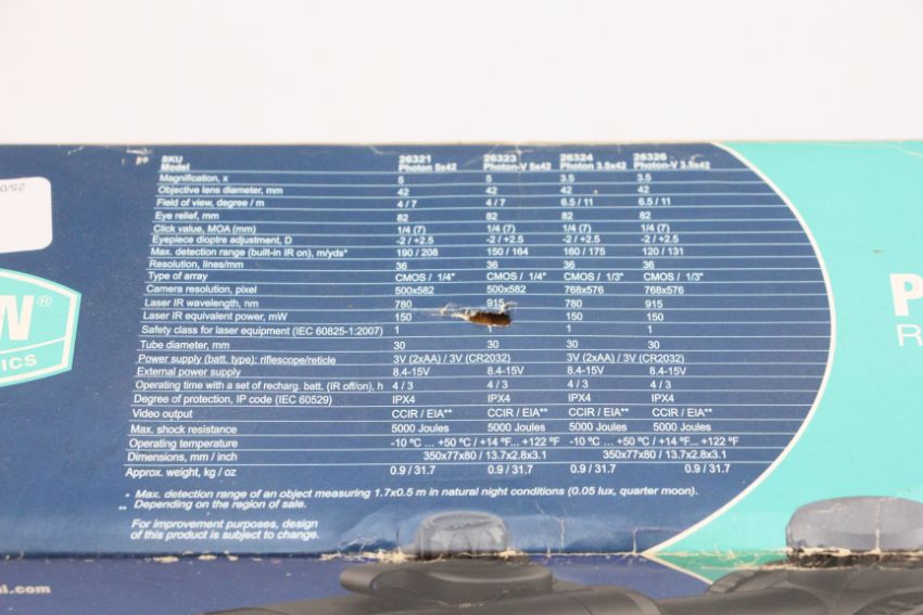 YUKON ADVANCED OPTICS PHOTON 35X42 RIFLE SCOPE WITH BOX AND INSTRUCTIONS (NO MOUNTS).