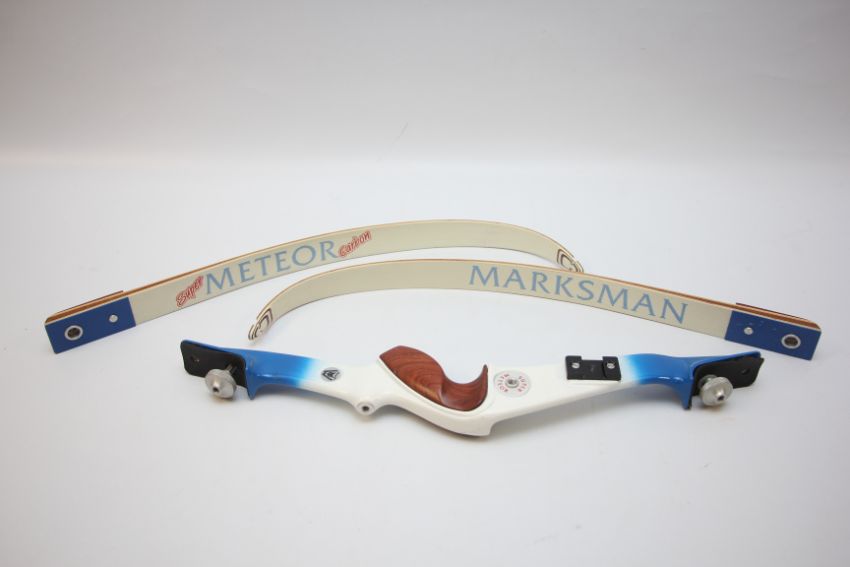 MARKSMAN LES HOWES SUPER METEOR ARCHERY BOW WITH ARROWS, CASE AND ACCESSORIES.