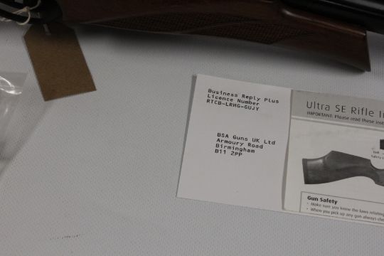 BSA ULTRA SE PCP SINGLE SHOT .177 AIR RIFLE WITH FILL ADAPTOR - (ALL GUNS TO BE INSPECTED AND SERVICED BY QUALIFIED GUNSMITH BEFORE USE)