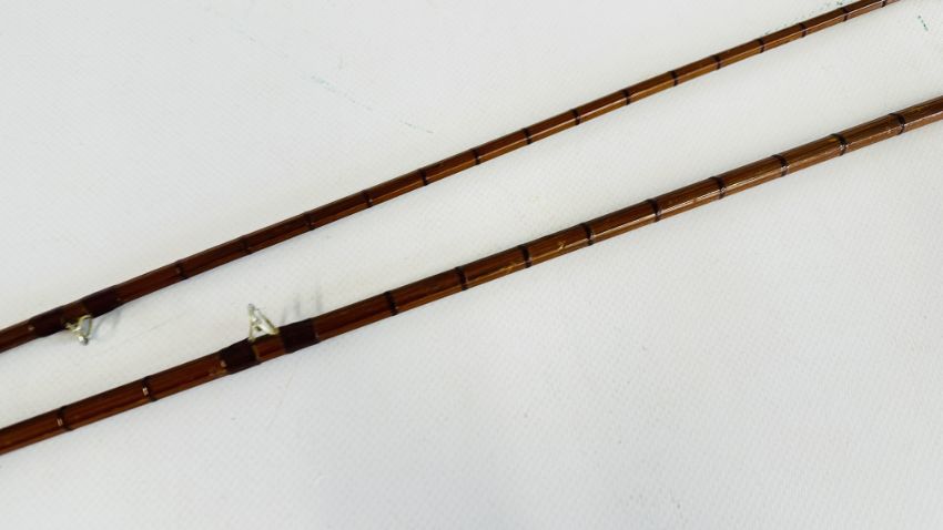 HARDY SPLIT CANE "THE PERFECTION ROD" 2 PIECE, 9' PALAKOMAR (REGISTERED TRADE MARK) COMPLETE WITH HARDY BAG, BUTT HAS FOLLOWING IMPRESSION ON REEL SEAT "BRIT PAT NO 196216, MADE BY HARDY BROS LTD ALNWICK ENGLAND, 2 X ROYAL COAT OF ARMS "BY APPOINTMENT", WHIPPING ROUND TIP RING APPEARS TO HAVE BEEN REPLACED? ROD IN GOOD CONDITION, BAG IN FAIR CONDITION.