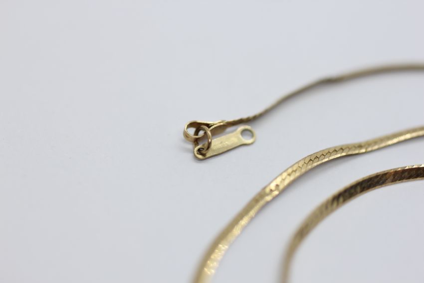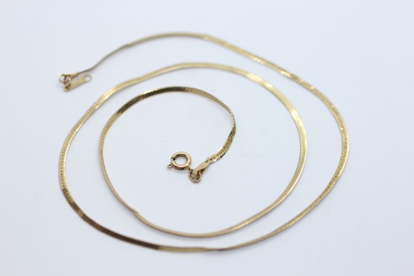 A FINE 9CT GOLD NECKLACE, L 41CM.