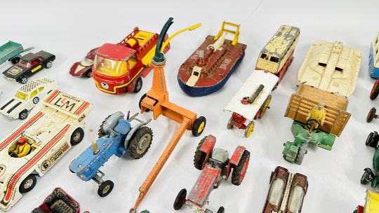 A GROUP OF VINTAGE DIE-CAST MODEL VEHICLES TO INCLUDE DINKY, CORGI AND MATCHBOX EXAMPLES.