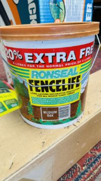 A BLACK AND DECKER 1600W LEAF BLOWER, QUALCAST LAWN RAKE RE 35 (BOXED) 2 X 14KG EVERGREEN COMPLETE 4 IN 1 + 6 LITRE RONSEAL FENCELIFE - SOLD AS SEEN.