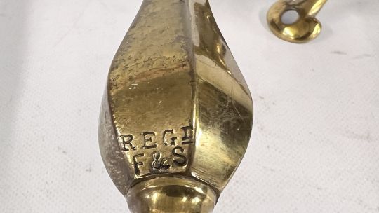 A MATCHED PAIR OF VINTAGE BRASS "FARADAY & SON", PULLMAN RAILWAY LAMPS.