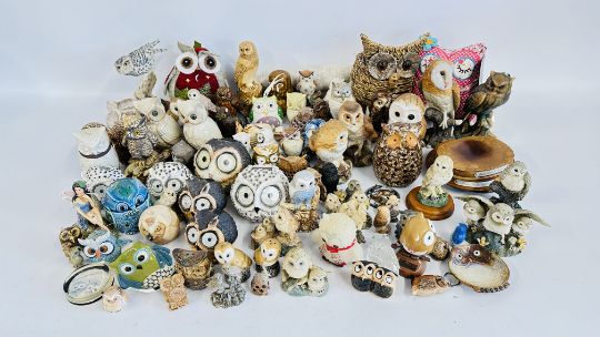 4 X BOXES CONTAINING AN EXTENSIVE COLLECTION OF ASSORTED OWL ORNAMENTS TO INCLUDE BORDER FINE ART AND QUAIL EXAMPLES ETC.