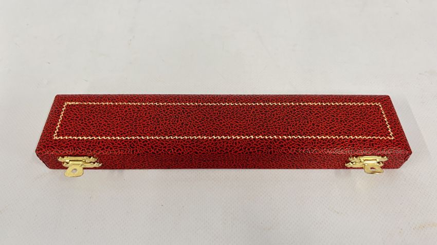 A STERLING SILVER REPLICA PAPER KNIFE OF A MEAT SKEWER IN PRESENTATION CASE, SHEFFIELD 1996, MAKER F.H.