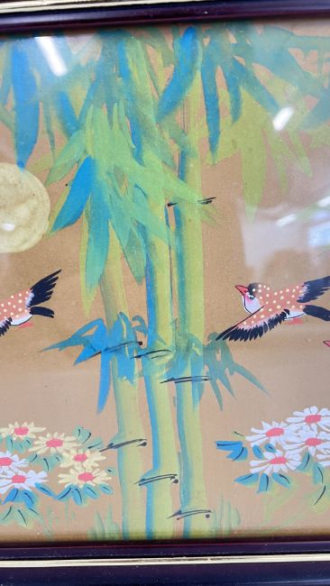 A GROUP OF 3 X FRAMED ORIENTAL PICTURES TO INCLUDE AN EMBROIDERED ORIENTAL SILK PANEL, W 43 X H 85CM.