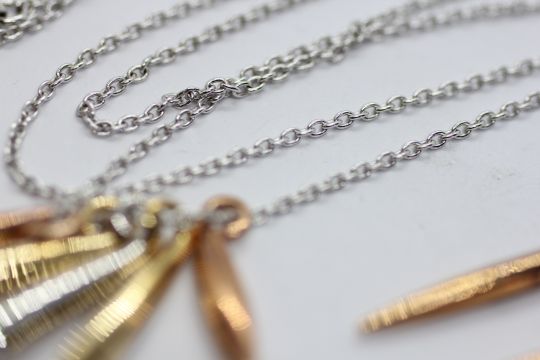 A DESIGNER "HOT DIAMONDS" ICICLE ROSE AND YELLOW GOLD PLATED PENDANT (DN098) SUSPENDED ON A SILVER CHAIN + MATCHING DROP EARRINGS IN ORIGINAL PRESENTATION BOXES WITH BAG.