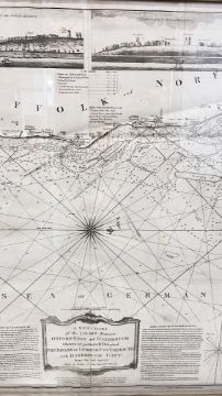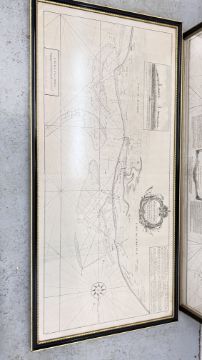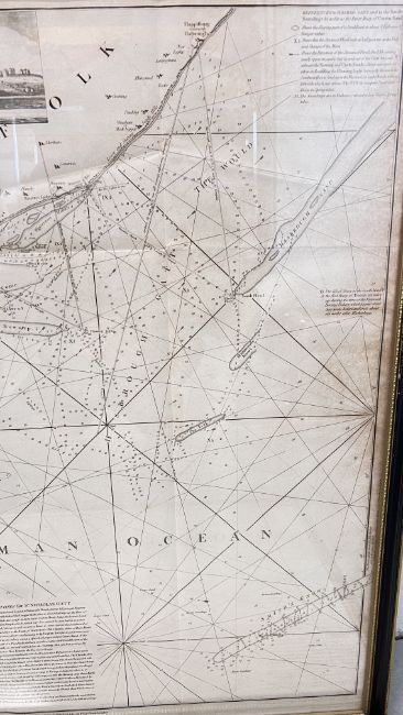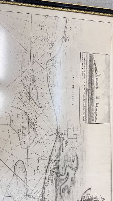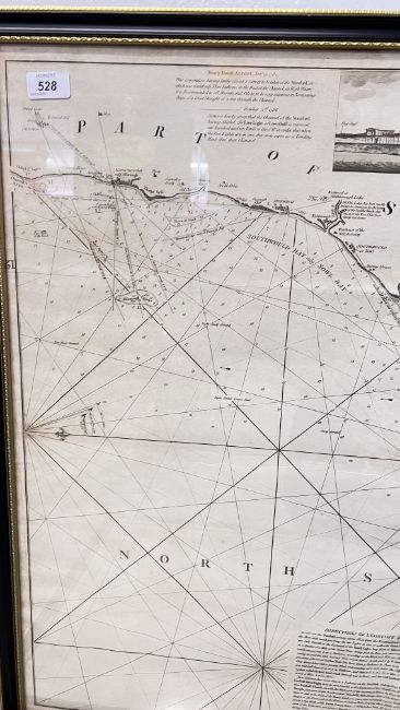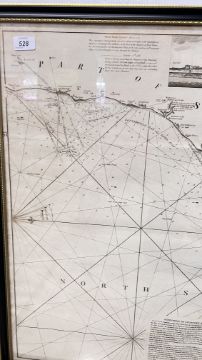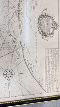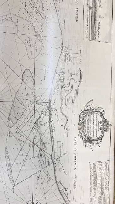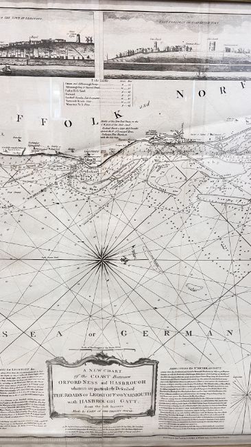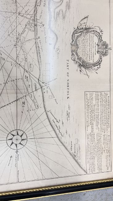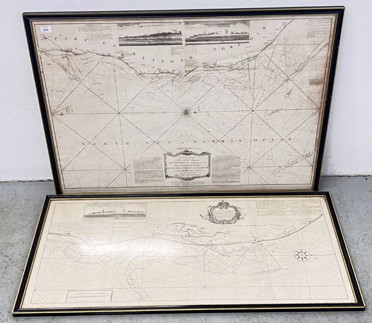 FRAMED MAP CHANNELLS OF COCKLE & ST. NICHOLAS GATTS WITH BUOYS SANDS AND SEA MARKS BETWEEN WINTERTON THWART LIGHTS AND PAKEFIELD DRAWN BY DAN LOUNDER, 72 X 106CM.