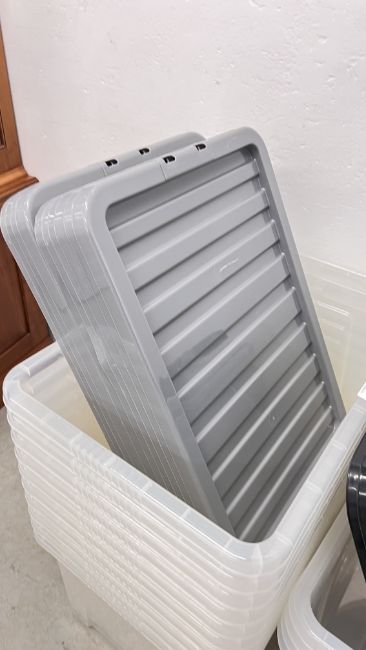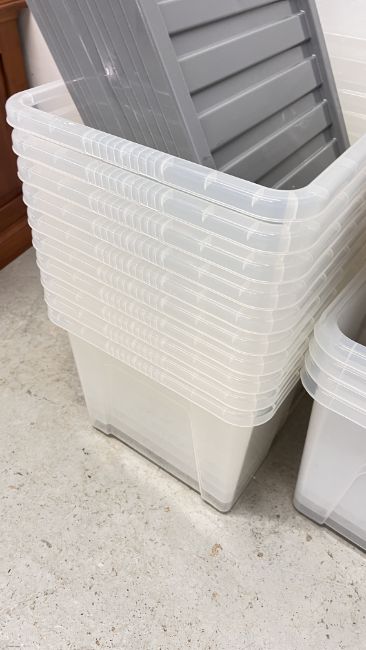 14 X 65 LITRE PLASTIC STORAGE BOXES WITH LIDS.