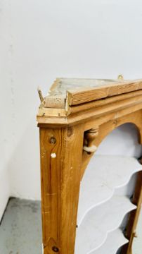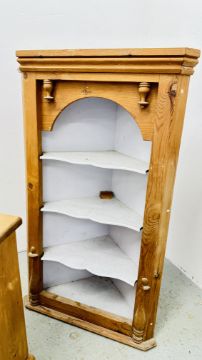 A SMALL WAXED PINE TWO OVER TWO DRAWER CHEST, W 51CM X D 34CM X H 56CM + A WAXED PINE WALL HUNG PINE CORNER CABINET, H 93CM.