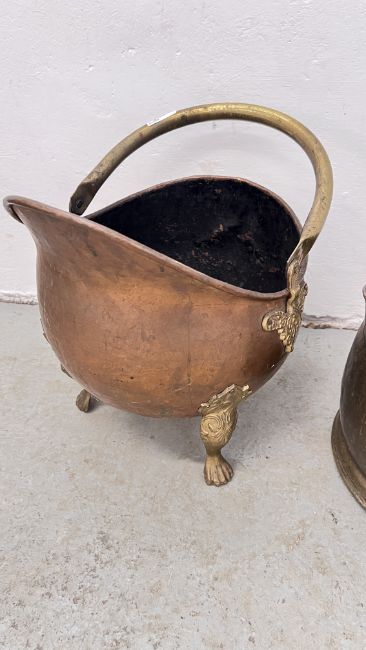 2 VINTAGE COAL BUCKETS, ONE BRASS AND THE OTHER COPPER.