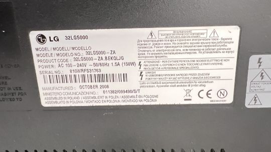 LG 32 INCH TV MODEL 32LG5000-ZA LEAD AND REMOTE - SOLD AS SEEN.