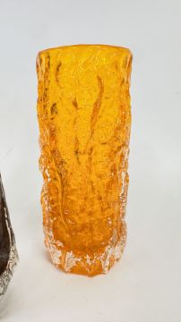 TWO WHITEFRIARS VASES TO INCLUDE A TANGERINE BARK EXAMPLE BY GEOFFREY BAXTER + A FURTHER ART GLASS VASE.