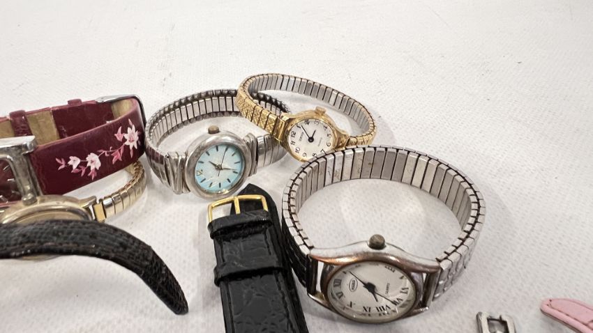 A BOX OF ASSORTED WRIST WATCHES TO INCLUDE EXAMPLES MARKED PULSAR, TISSOT, SEKONDA, SEIKO.