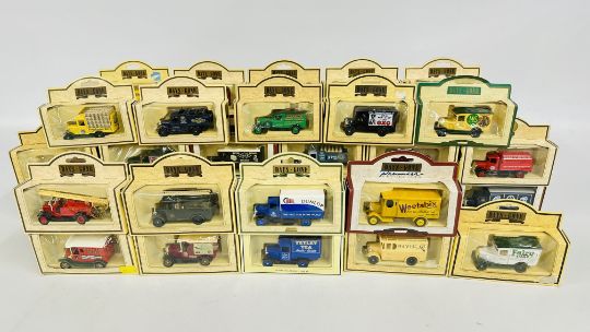 A BOX OF ASSORTED "DAYS GONE" DIE CAST MODEL VEHICLES / ADVERTISING VANS IN ORIGINAL PRESENTATION BOXES.