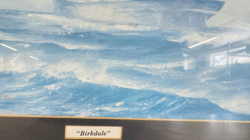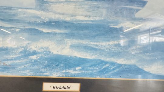 PAIR SHIPPING PRINTS HMS DITTON OWNED BY R.W. LEYLAND LIVERPOOL (HISTORY ON BACK) AND THE BIRKDALE OWNED BY PETER IREDALE & PORTER LINE LIVERPOOL IN 1892 (HISTORY ON BACK) BOTH IN VERY GOOD FRAMES AND GLAZED, 60CM L X 50CM H.