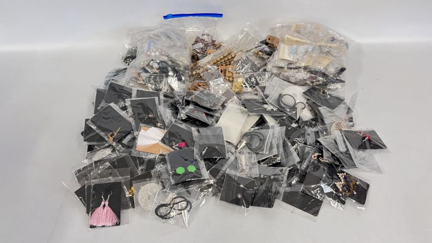 JOB LOT OF COSTUME JEWELLERY TO INCLUDE EARRINGS, NECKLACES AND BRACELETS (IN 2 BOXES).