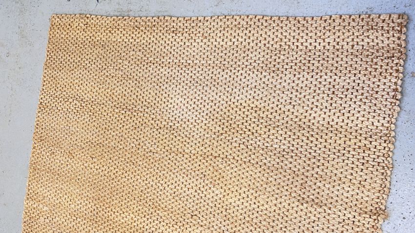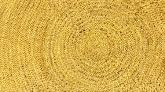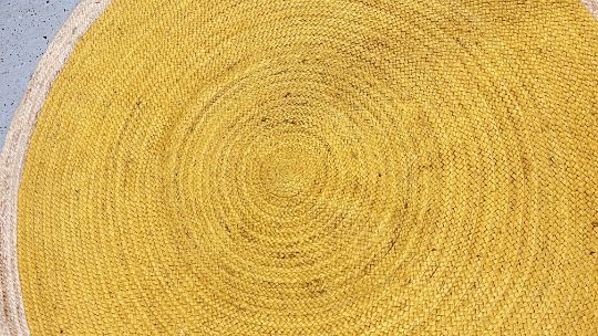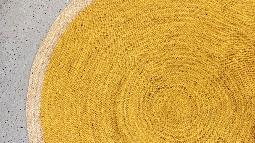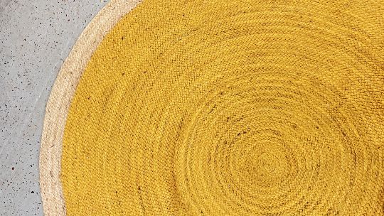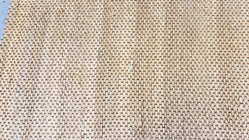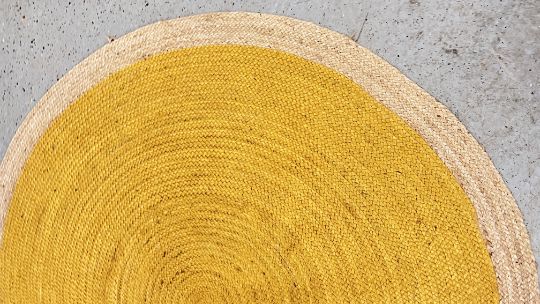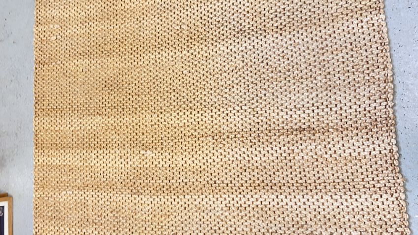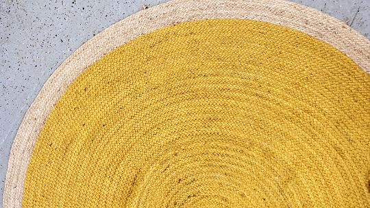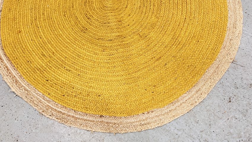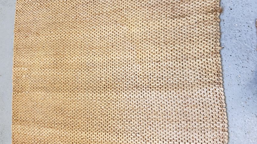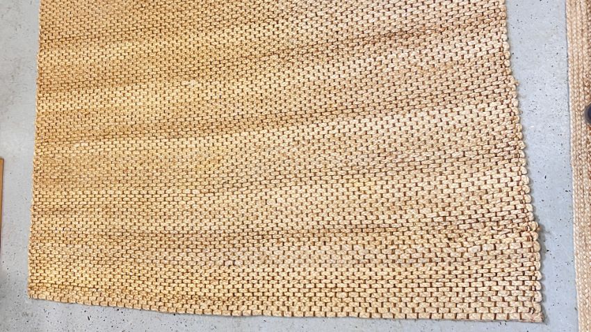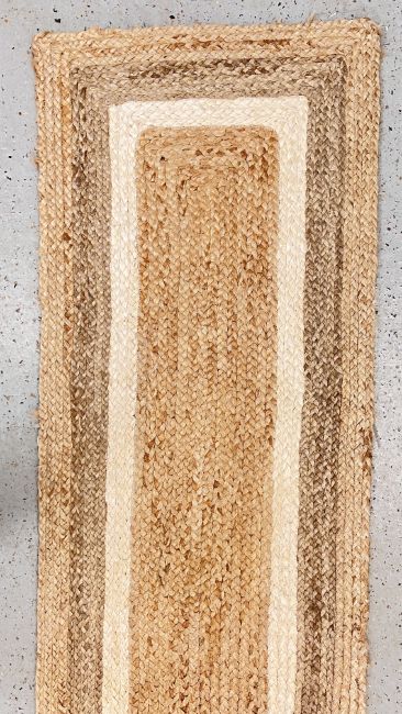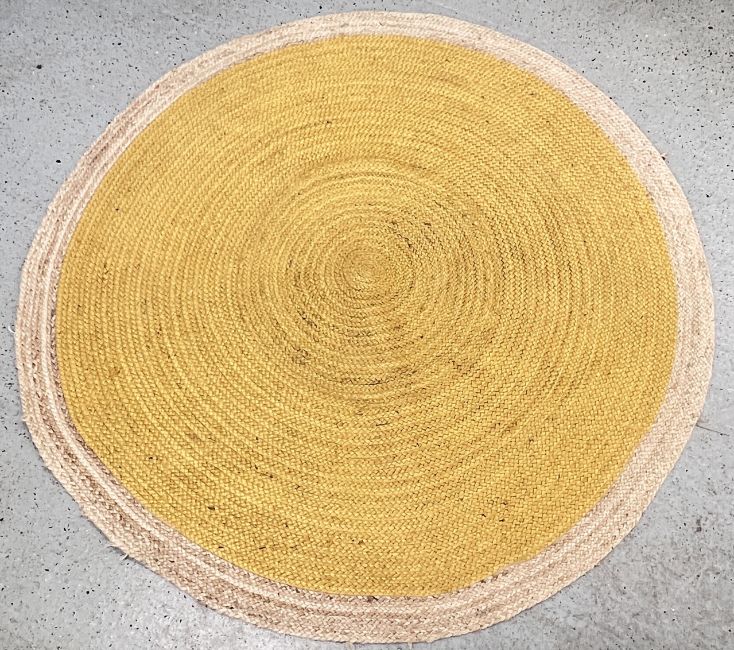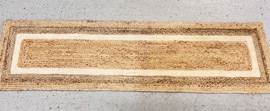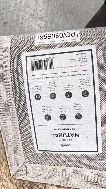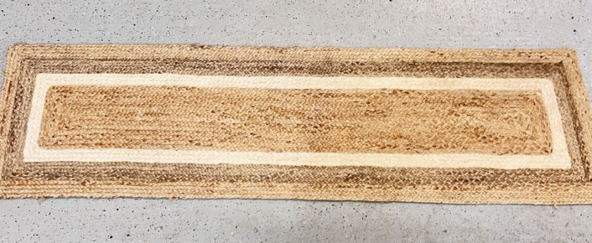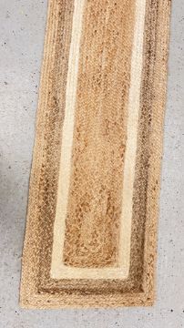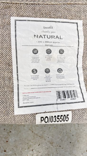 DUNELM NATURAL JUTE BORDER HALL RUNNER, 230CM X 60CM PLUS DUNELM NATURAL CHUNKY JUT CARPET, 290CM X 200CM AND WOVEN CIRCULAR RUG, DIAMETER 185CM.