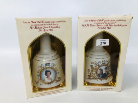 TWO COMMEMORATIVE WADE WHISKY BELLS TO INCLUDE 1986 ROYAL WEDDING ANDREW AND SARAH FERGUSON, 1986 BIRTHDAY QUEEN ELIZABETH II