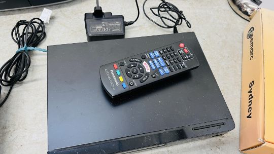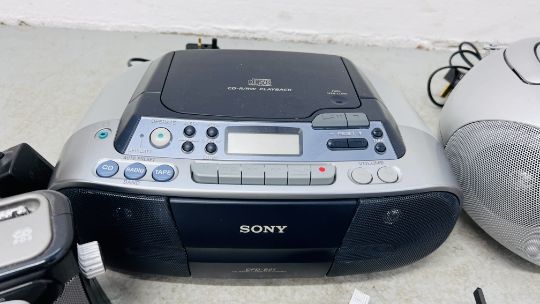 TWO BOXES OF ELECTRICALS TO INCLUDE ROBERTS GEMINI 45 RADIO, LAMP AND SONY AND BUSH COMPACT DISC PLAYERS, ETC. - SOLD AS SEEN