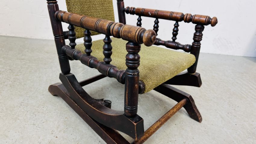 VINTAGE MAHOGANY FRAMED CHILDS ROCKING CHAIR A/F
