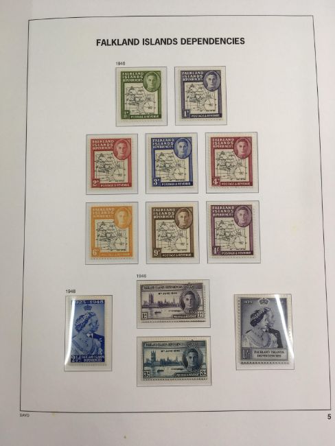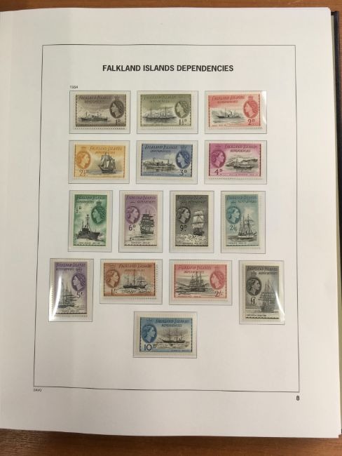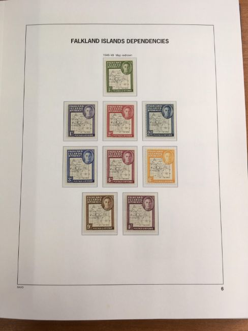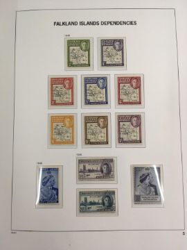 FALKLAND ISLANDS DEPS: 1944-2016 MAINLY MNH COLLECTION IN TWO SG PRINTED ALBUMS, 1944-5 SETS OG AND USED, MAP SETS WITH A FEW VARIETIES, 1954-62 SET MNH AND USED (2), SOUTH GEORGIA 1963-69 SET OG AND USED, 1971-6 AND 1977-8 SURCHARGES WITH PRINTINGS, LATER WITH DEFINITIVES, COMMEMS, MINISHEETS AND SHEETLETS. A FEW PAGES WITH TONING.