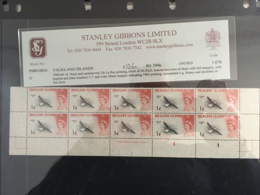 FALKLAND ISLANDS: 1960-6 SELECTION OF LOWER MARGINAL BLOCKS OF TEN TO INCLUDE DE LA RUE PRINTINGS WITH ½d AND 2d BLOCKS SHOWING 'WEAK ENTRY' AND 'SUBSTITUTED CLICHE' VARIETIES, ALSO MNH SINGLES OF THE FOUR DLR VALUES. (7 BLOCKS + 4).