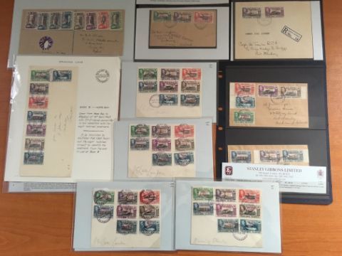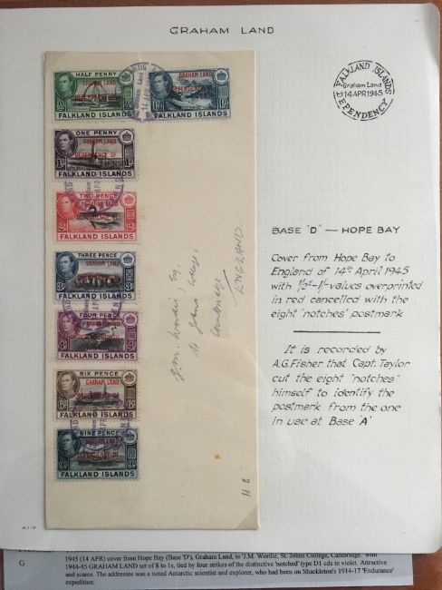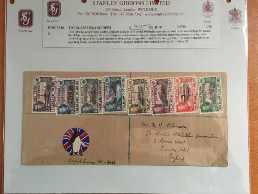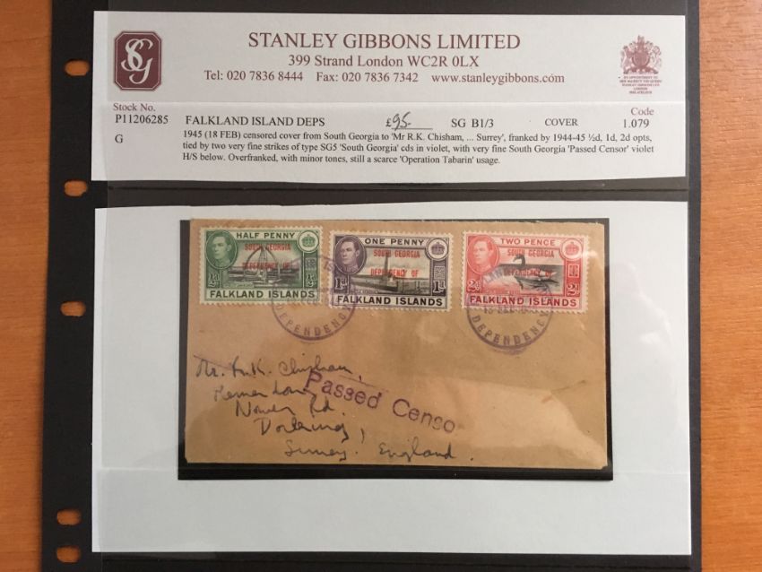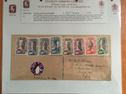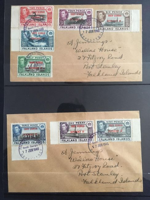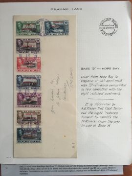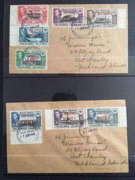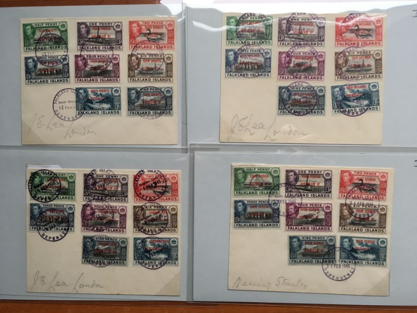 FALKLAND ISLANDS DEPS: 1944-5 ISSUE SELECTION OF COVERS INCLUDING THE FOUR SETS OF EIGHT ON SIMILAR ENVELOPES, OPERATION TABARIN WITH SOUTH GEORGIA 1945 (18 FEB) COVER TO UK WITH ½d, 1d AND 2d AND 'PASSED CENSOR' HANDSTAMP, GRAHAM LAND 'NOTCHED' CDS TYPE CANCELLING SET COVER TO UK ETC. (10 COVERS)