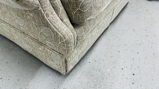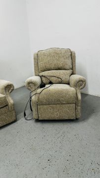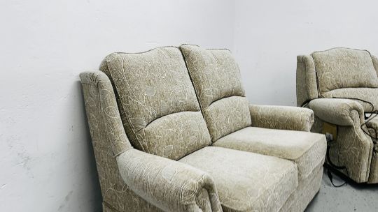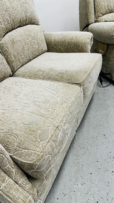 A GOOD QUALITY ALSTONS STONE UPHOLSTERED TWO PIECE LOUNGE SUITE COMPRISING ELECTRIC RECLINER AND TWO SEATER SOFA - SOLD AS SEEN.