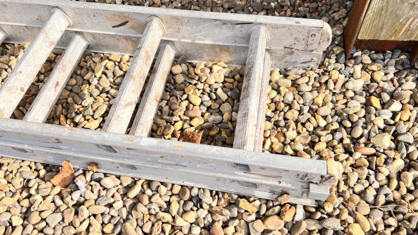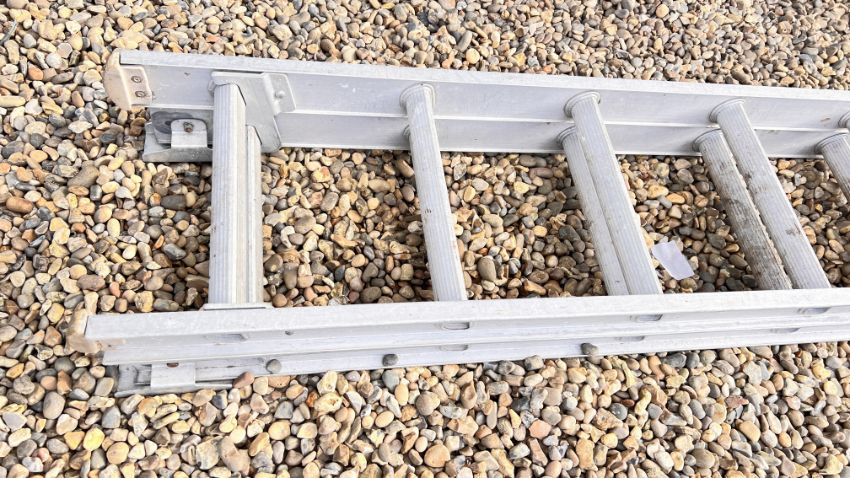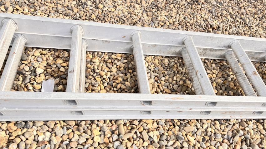 ALUMINIUM 28 RUNG DOUBLE EXTENSION LADDER.