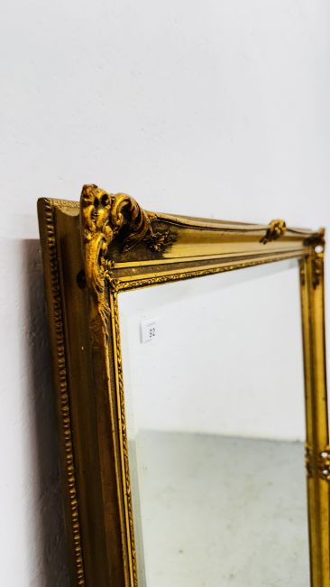 A LARGE ORNATE GILT FRAMED MIRROR 105CM X 135CM.