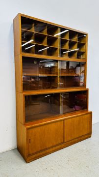A SIMPLEX FOUR SECTION STACKING BOOKCASE OVERALL HEIGHT 180CM, WIDTH 122CM, MAX DEPTH 36CM.