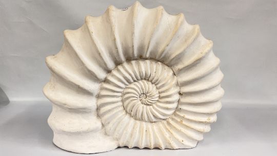 A LARGE ART PLASTER AMMONITE STUDY W 70CM X H 53CM.
