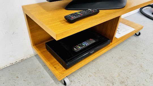 PANASONIC VIERA 37 INCH TELEVISION WITH REMOTE PLUS PANASONIC HARD DRIVE RECORDER WITH REMOTE AND INSTRUCTIONS ON BEECHWOOD STAND - SOLD AS SEEN.