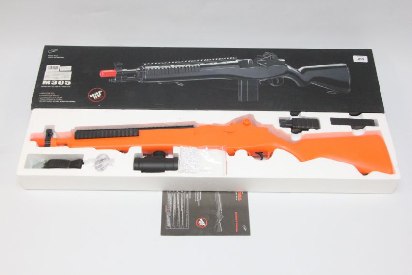 M305P DESIGN 6MM BB AIRSOFT 200 SHOT GUN BOXED WITH ACCESSORIES.