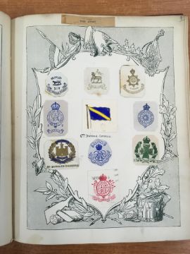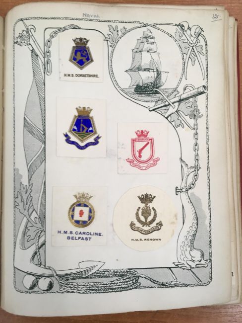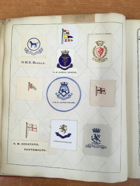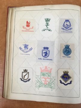 EPHEMERA: BOX WITH VARIOUS, ALBUM OF CRESTS AND A FEW STAMPS, TEA CARDS, D.C. THOMPSON PICTURE ALBUMS, PARTIALLY FILLED ETC.