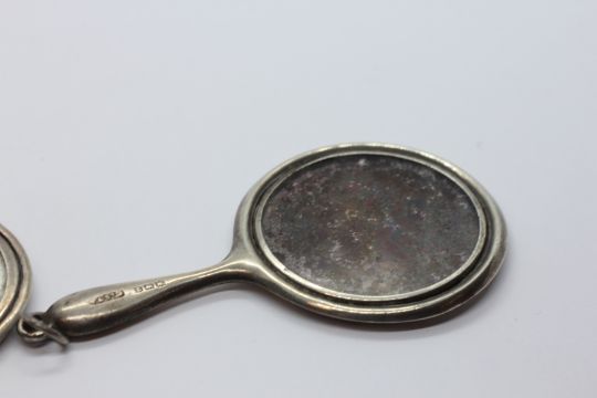 TWO MINIATURE SILVER MOUNTED CHANTELAINE HAND MIRRORS.