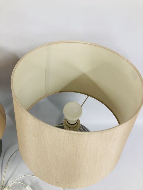 A PAIR OF DESIGNER TABLE LAMPS MARKED "DAR" WITH CREAM SHADES - SOLD AS SEEN.