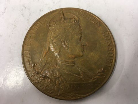 COINS: CIGAR BOX VARIOUS INCLUDING 1902 CORONATION BRONZE MEDALLION IN BOX OF ISSUE, 1924 AND 1925 WEMBLEY EXHIBITION TOKENS ETC.