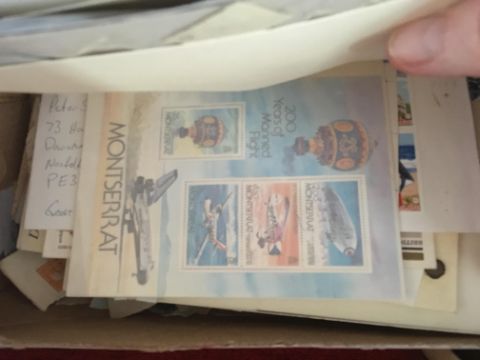 STAMPS: BOX WITH THE BALANCE OF A COLLECTION IN FIVE VOLUMES AND LOOSE, MUCH TO SORT THROUGH.