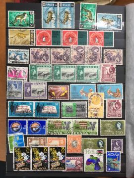 STAMPS: FAMILY COLLECTION IN THREE VOLUMES AND LOOSE, INDIA WITH 1948 GANDHI 10r USED, 1933 IMPERIAL AIRWAYS ENVELOPE AND CONTENTS, MALAYA, ETC.