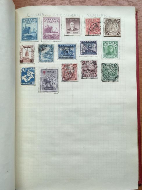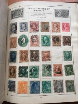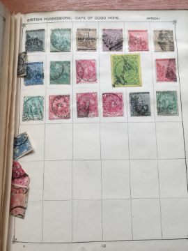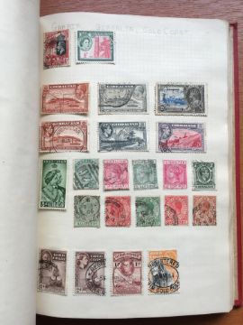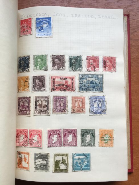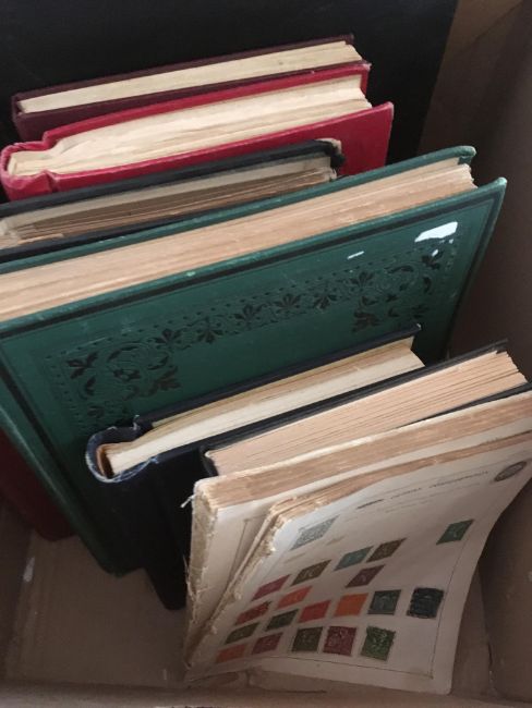 STAMPS: BOX WITH GENERAL COLLECTIONS IN NINE VARIOUS VOLUMES, SOME OLD TIME REMAINDERS, MIDDLE EAST, STRAND, SEFTON ETC.