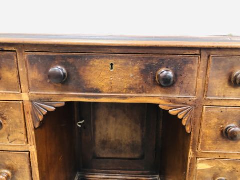 ANTIQUE MAHOGANY 9 DRAWER KNEEHOLE DESK.