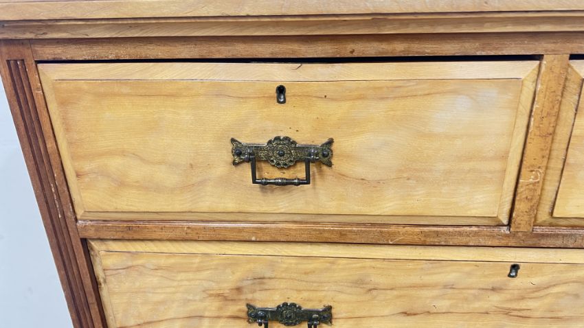 A VINTAGE TWO OVER THREE DRAWER SATIN WOOD CHEST, W 103 X D 50 X H 108CM.